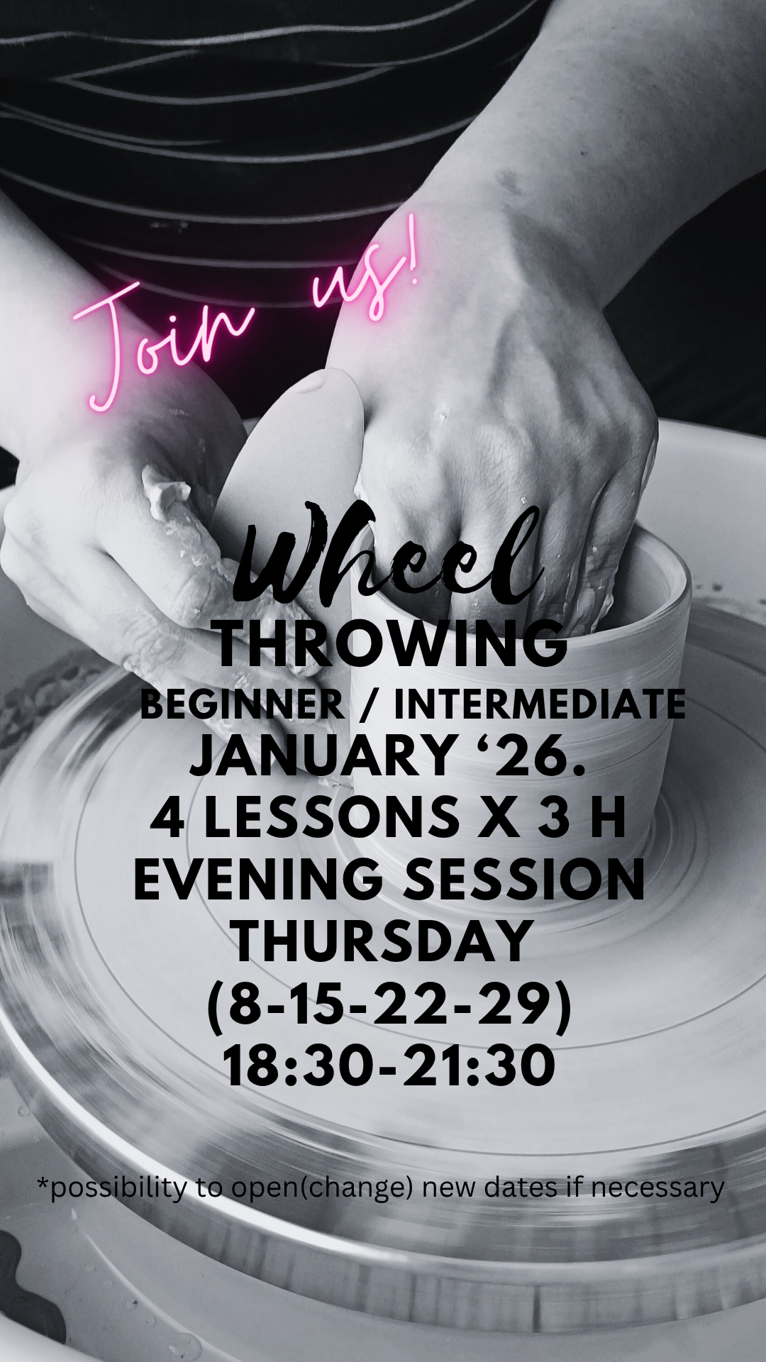 Wheel throwing beginners-January 2026. Thursday 10-13 4x3h