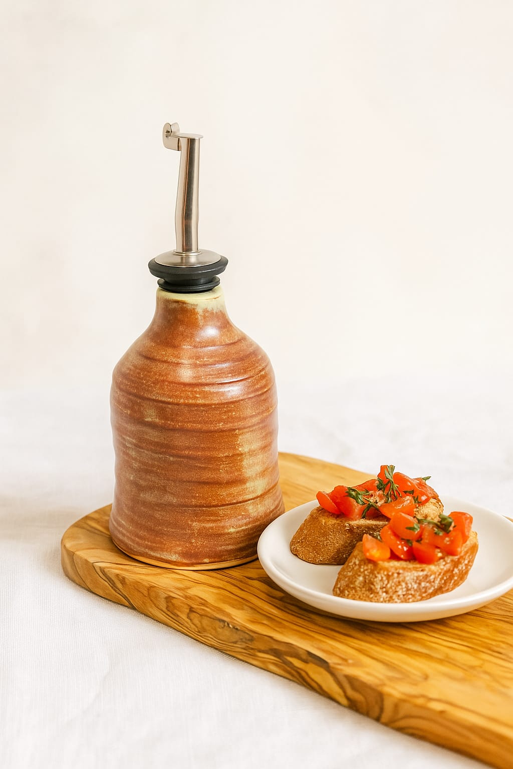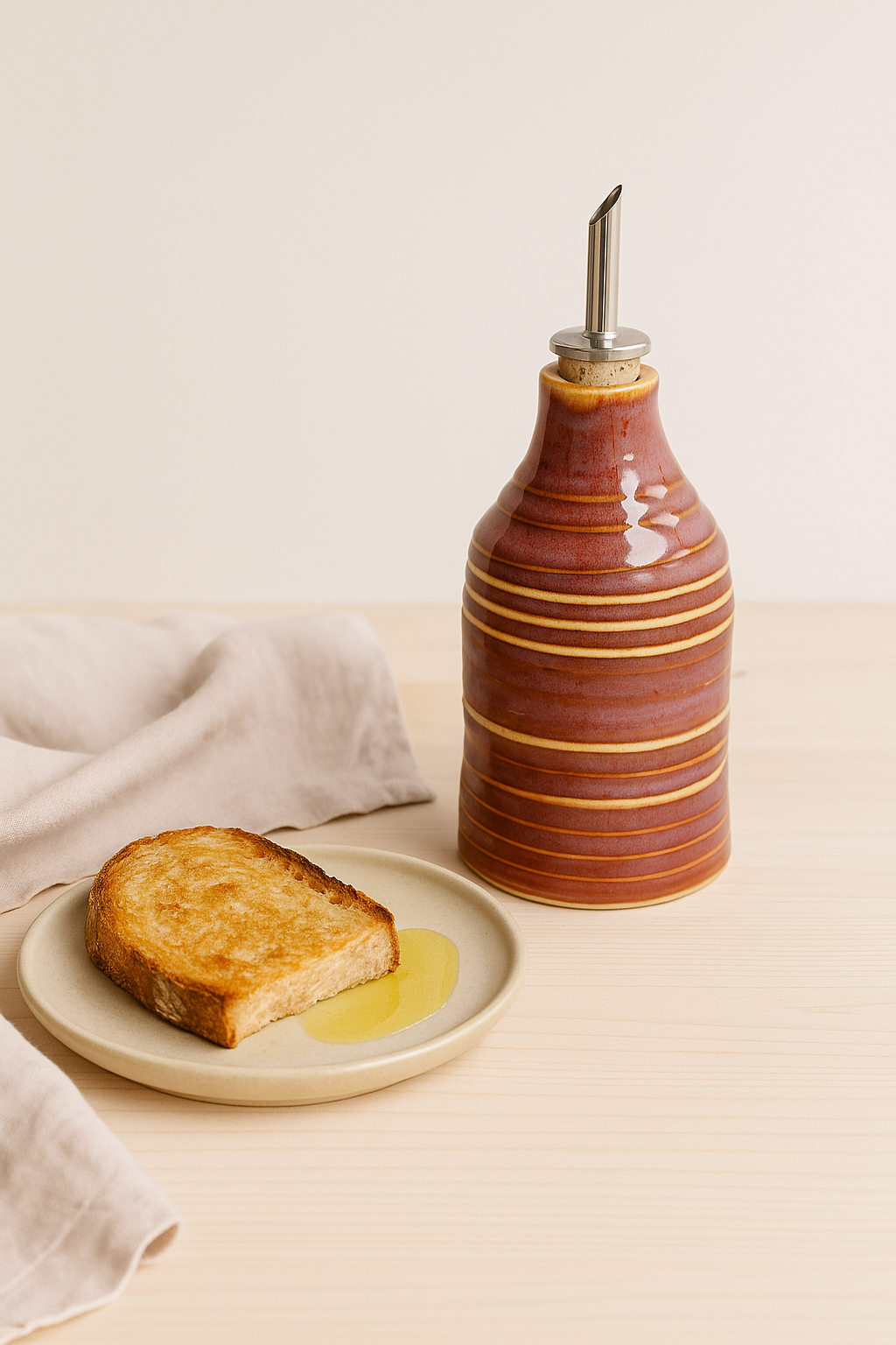 Elevate your kitchen with this handcrafted sea green ceramic olive oil bottle, where functionality meets organic beauty. The rich green glaze reflects the hues of the Mediterranean — calm, fresh, and timeless.